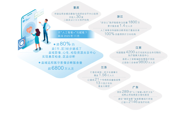 人工智能技术也有助于优化医疗资源配置。在浙江丽水市景宁畲族自治县,基层医生可通过“云诊室”平台,连线县级医院专家进行远程会诊。河北南皮县的沧州市第四医院则探索建设“数智县域医共体”,依托人工智能与大模型,推动优质医疗资源下沉基层。数坤科技董事长毛新生表示:“人工智能和大模型不是简单替代医生,而是通过体系化能力,把优质医疗资源真正送到基层。”