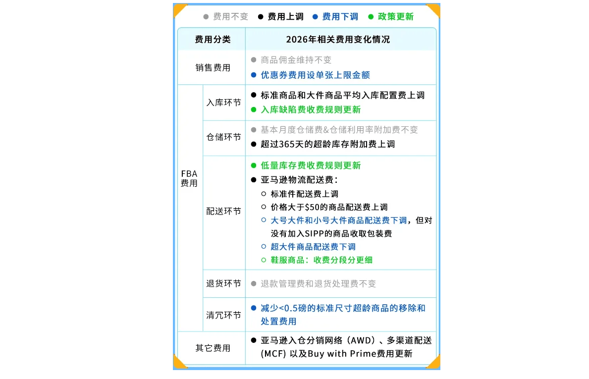 注意:亚马逊提到2026年不会新增FBA费用类型。