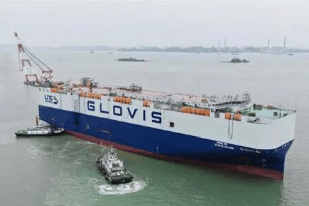 1月21日,广船国际为韩国HMM公司建造的10800车LNG双燃料汽车运输船(PCTC)1号船出坞,为实现全年生产任务“开门红”再添新彩。
