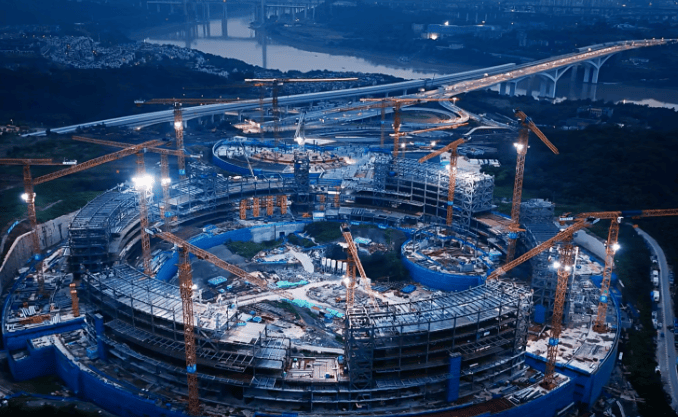 该研发中心坐落于重庆两江新区礼嘉智慧公园旁,占地约155亩,总建筑面积接近33万平方米。自2025年8月完成地下结构工程后,其以“中国速度”拔地而起,施工现场火力全开,目前整体规模已显,堪称未来科技地标。