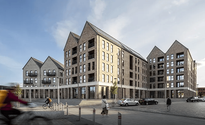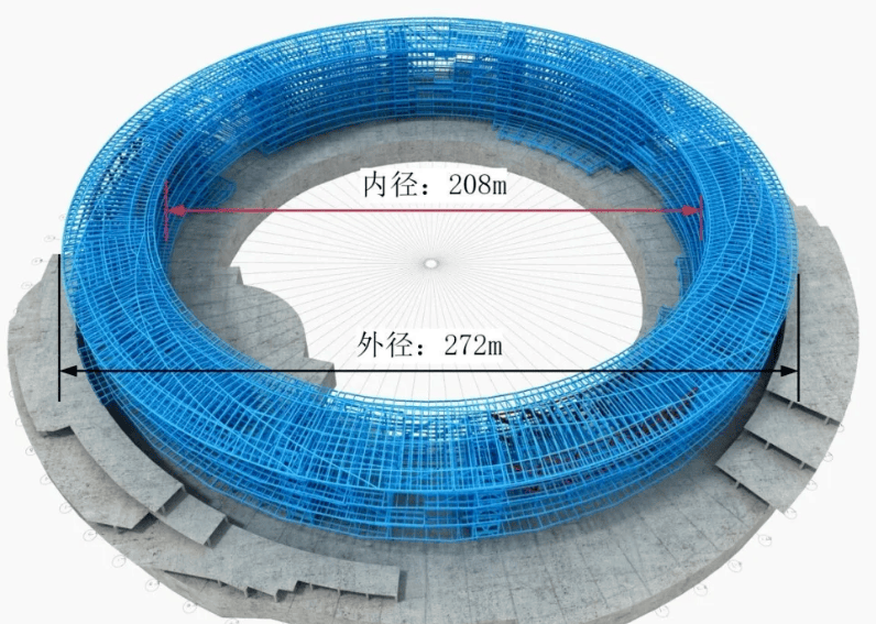 建筑外观极具辨识度,6栋单体围合成巨大的圆环,外径约272米,内径约208米,地上9层、地下3层。