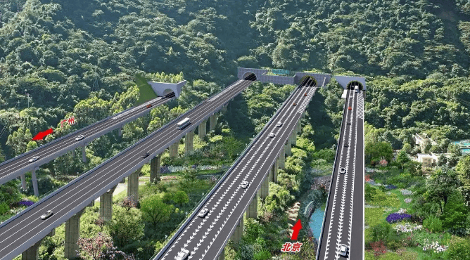 大宝山隧道将在双向两侧各新增一座两车道隧道,北京方向长为1605米,广州方向长为1493米。