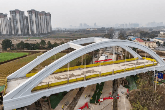 1月26日,由中铁二局承建的成渝中线高铁龙泉特大桥6000吨系杆拱平稳落位于桥墩之上,标志着全长14公里的成渝中线高铁最长桥梁打通关键障碍,为全线按期通车奠定坚实基础。