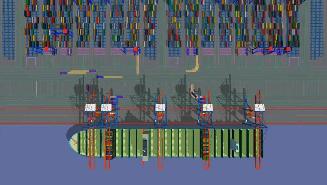 项目采用了上海振华重工集团自主研发的ZPMC SmartSim仿真软件,这是一款集装箱码头全生命周期三维动态虚拟仿真工具。该软件基于公司在自动化设备、智能控制及系统工程领域的积累,实现了装卸设备、运输车辆及调度策略等核心要素的数字化映射与模块化封装,在提高仿真精准度的同时,能够快速响应多样化需求。软件具备高精度仿真能力,可与码头管控系统无缝对接,支持作业计划预演与效能分析,为码头规划、运营与优化提供一体化数字支持。