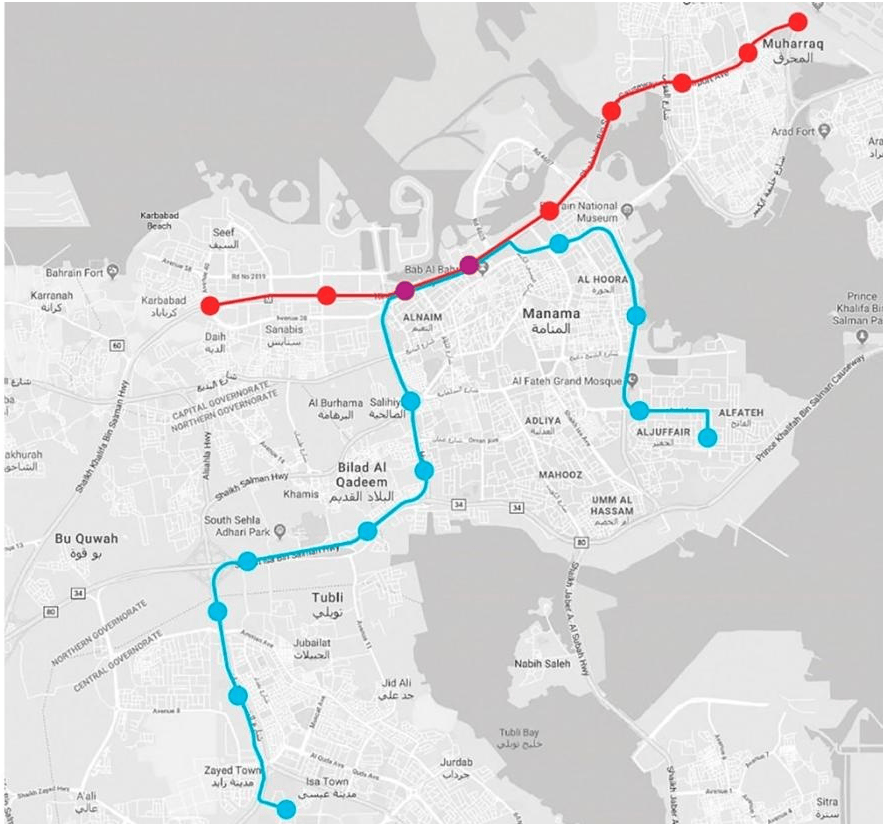 一期工程还将通过A段线路与哈马德国王国际铁路站连接,该段长约8公里,设4座车站。同时,政府正在研究二期规划,拟从拉姆利地区的哈马德国王国际铁路站延伸至萨希尔体育城和巴林世博中心,全长约18公里,设5座车站。