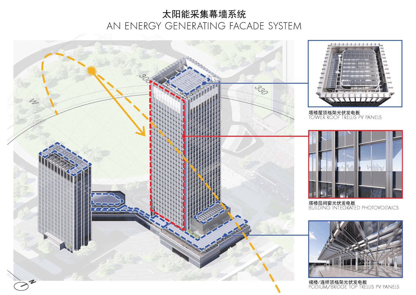在节能环保方面,该建筑通过整体节能策略与可再生能源的有机结合,实现了46%的综合节能率,其中现场产生的可再生能源满足建筑总能耗的15%,为绿色建筑树立了新标杆。
