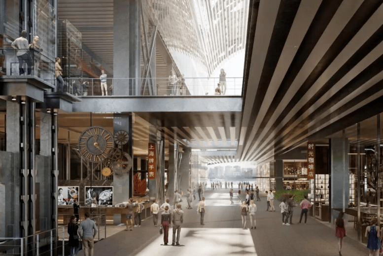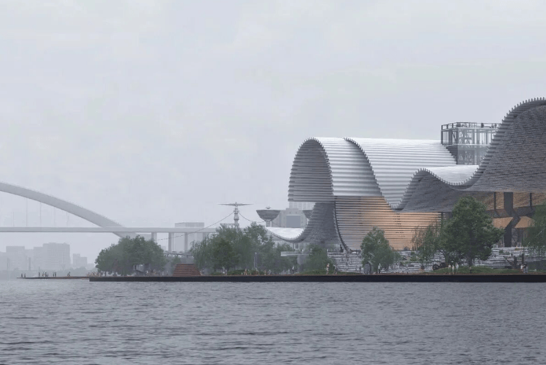 不止于外形,内部空间也充满巧思。开放式布局串联起新建的A馆与改造后的中国船舶馆(B馆),形成“1+1+N”的复合场景。“工业之门”与滨江大台阶将历史遗存与现代生活悄然衔接,未来这里既是展陈空间,也是公众漫步、体验、消费的活力场所。