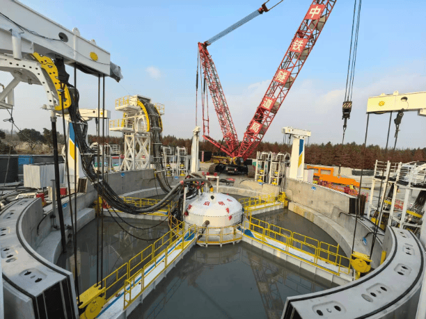 为其量身打造的“启明号”竖井掘进机开挖直径达24米,最大开挖深度可达150米,具备超大断面、超深水下高效开挖能力。该装备集成主驱动、支腿撑紧、截割双臂等系统,具备自主下沉、导向、环控与感知控制能力,搭载多项创新技术,实现“有人值守、无人操作”的智能掘进与衬砌同步拼装。