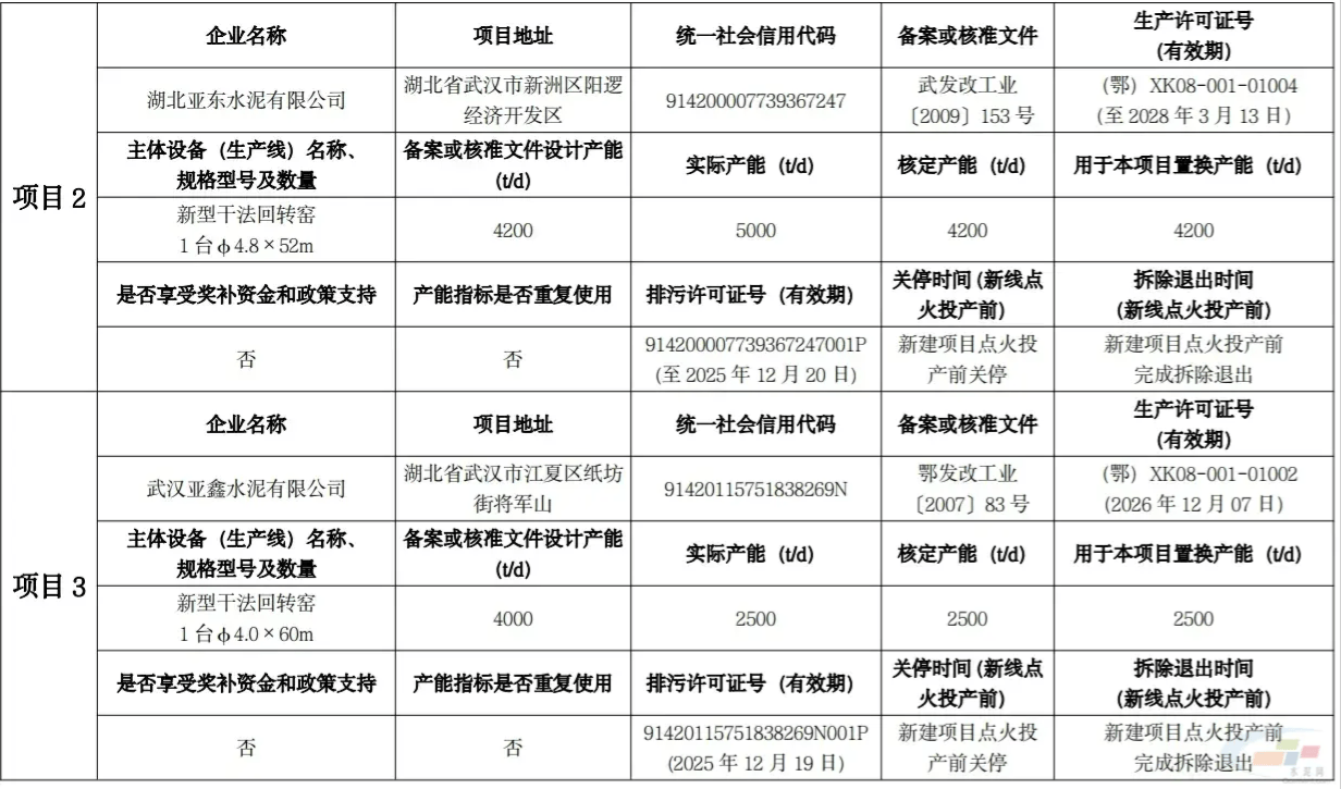根据此前信息,黄冈亚东水泥有限公司投资325000万元,建设一条7266t/d新型干法水泥熟料生产线。该生产线预计年产熟料239.8万吨、水泥300万吨,采用六级预热器带新型干法窑外预分解烧成工艺,并配备水泥研磨、矿山原料基地、码头、5MW光伏发电工程及相关辅助设施。