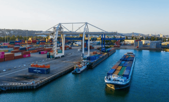 达飞集团此前领导了一个集团,获得了里昂罗讷多式联运码头30年的特许经营权。到2030年,集团目标是将该码头的集装箱处理量提升一倍,达到每年10万个内河集装箱和8万个铁路集装箱。为实现这一规划,集团及其合作伙伴将在两年内投入4000万欧元用于码头设施升级。