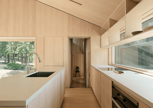 该住宅项目也体现了环境适应性的设计策略。建筑朝向与可开启窗户促进了自然通风与采光。场地规划注重水文管理,引导雨水与融雪下渗,以减少对湖泊的地表径流。整体上,这一建筑设计通过精准的空间操作与材料运用,在居住功能、建造逻辑与生态意识之间建立了平衡。