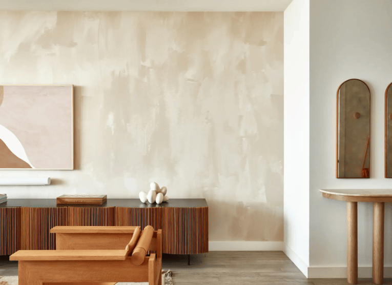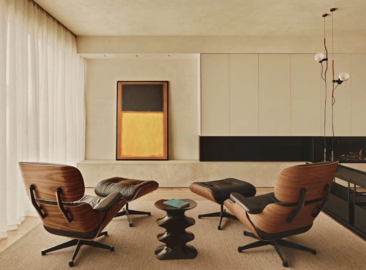 在空间感受方面,该色调在小户型客厅中能产生视觉上的扩张效果,而在开阔的客厅里则有助于联结不同功能区,增强整体感。尽管同属中性色系,通用卡其色能随着光线变化呈现不同的质感:白天显得明亮通透,夜晚则更具深度与暖意,为空间注入一份亲密感。若与富有质感的材料相结合,如石灰涂料墙面、原木、陶器、亚麻或羊毛织品,其效果尤为突出。