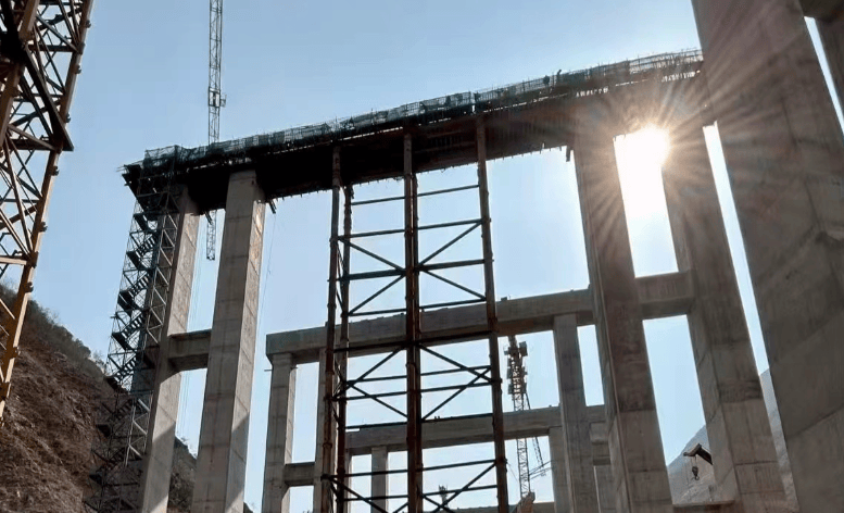 热水河特大桥地处雷波县与金阳县交界的高山峡谷区,桥梁工程建设挑战重重。这里地形陡峭,材料运输困难,汛期风险高。大桥桥墩最高离地55米,整座桥长超2.5公里,需吊装一千多片预制盖梁。其中,横跨泥石流沟的15到18号桥墩上的盖梁,每片重达千吨,是该桥梁工程全线施工的“硬骨头”。