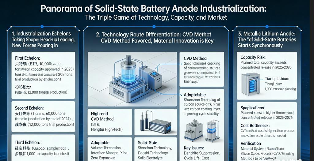 固态电池负极的工业化发展遵循一条明确的技术路线,其进展与电解质体系的成熟程度密切相关。技术路径通常分为三个阶段:首先是兼容与改进阶段,主要应用硅基或复合负极材料;其次是升级与突破阶段,涉及预锂化或复合锂金属负极的引入;第三阶段作为长期目标,旨在实现纯锂金属负极的规模化应用。