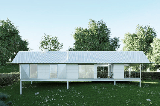 该装配式住宅所有构件均在异地预制,随后用半挂车运送到现场。令人惊叹的是,主体结构仅用两天就搭建完成,48 小时内实现整体组装。这种建造方式不仅大幅缩短了工期,还将对地块的干扰降至最低。住宅架设在桩基系统之上,能巧妙适应不规则地形,最大限度减少土方工程,让建筑轻盈地与地面接触。