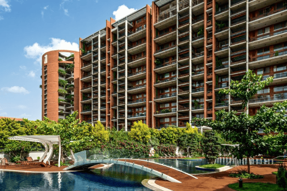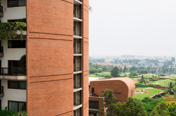 以班加罗尔的“Windmills of Your Mind”项目为例,该事务所展示了这种方法的规模化应用。这座高层住宅项目位于“印度硅谷”中心,整个场地都融入了广泛的植物种植。“在 Windmills of Your Mind,我们现在土地上的绿化比最初建造建筑时还要多,”Kamal自豪地说。该事务所还以“及时设计”理念为衡量成功的标准,其设计的住宅经久不衰,深受居民喜爱。