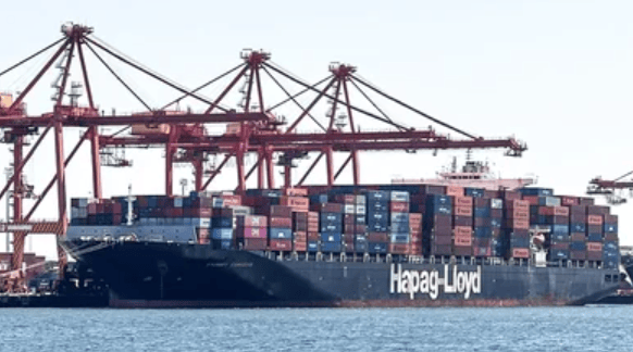 一艘名为悉尼快运号的集装箱船停靠在帕特里克码头,该船曾名韩进瑞士号,由韩国韩进海运运营,该公司在2016年底申请破产,对航运市场造成显著影响。