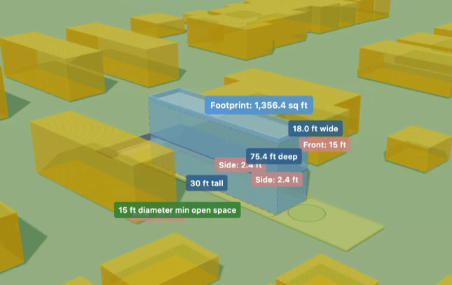 来自芝加哥城市景观的一款新3D可视化工具,允许用户根据物业具体分区规定创建三维建筑模型。该工具生成包含高度限制、退让要求和容积率约束的详细模型,通过3D可视化技术呈现地块开发潜力的直观参照。