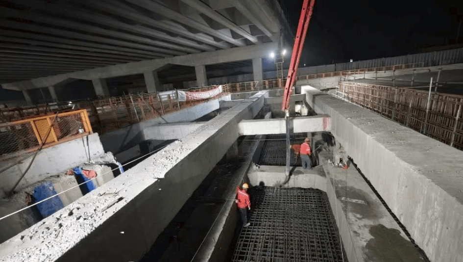 此次隧道贯通的最后一块顶板位于闻居路跨线桥下方,作为跨线桥托换的关键节点,项目团队对施工质量进行严格控制。施工过程中,团队完成了低净空、大直径超深钻孔灌注桩作为托换桩基,并在基坑开挖期间凿除老桥桩基,将跨线桥沉降控制在1厘米以内,确保了托换作业及G1503高速公路隧道结构贯通按计划完成。