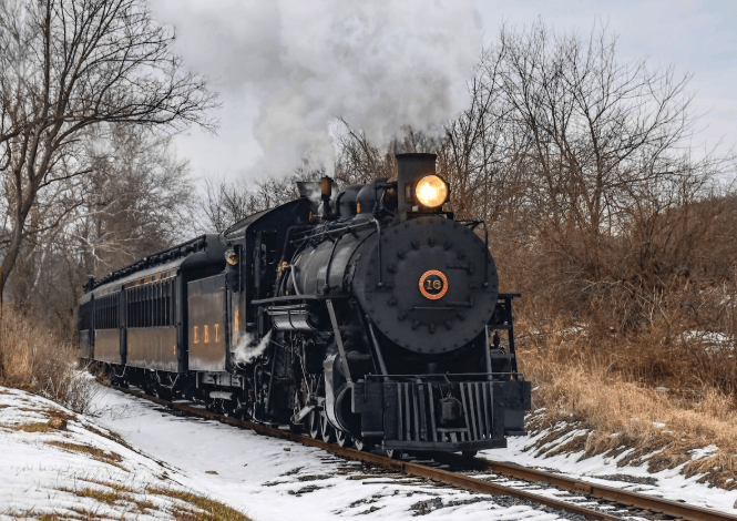 冬季活动期间,东布罗德托普铁路展示了柴油和蒸汽列车运行。其中,16号蒸汽机车因部件冻结临时停运,但经机械团队修复后于活动末期恢复无瑕运行。这条33英里长的铁路历史悠久,自1870年代运营至1956年,后作为旅游线路运行至2011年,1964年被指定为国家历史地标。2020年,三位铁路行业领袖发起修复计划,目标恢复大部分线路。