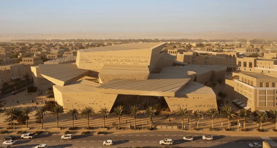 歌剧院由挪威Snøhetta与利雅得本土的Syn Architects合作设计,以当代视角诠释纳吉迪建筑传统。设计灵感源于当地沙漠地貌,采用聚落式布局,通过开放式连廊形成遮阳通风系统。建筑选用棕榈木、石材与夯土等本土材料,立面面积约5.6万平方米,规划地下2层、地上8层。德拉伊耶古城复兴计划总投资预计超过632亿美元,歌剧院项目作为其文化旗舰,承载着沙特文化转型的战略使命。