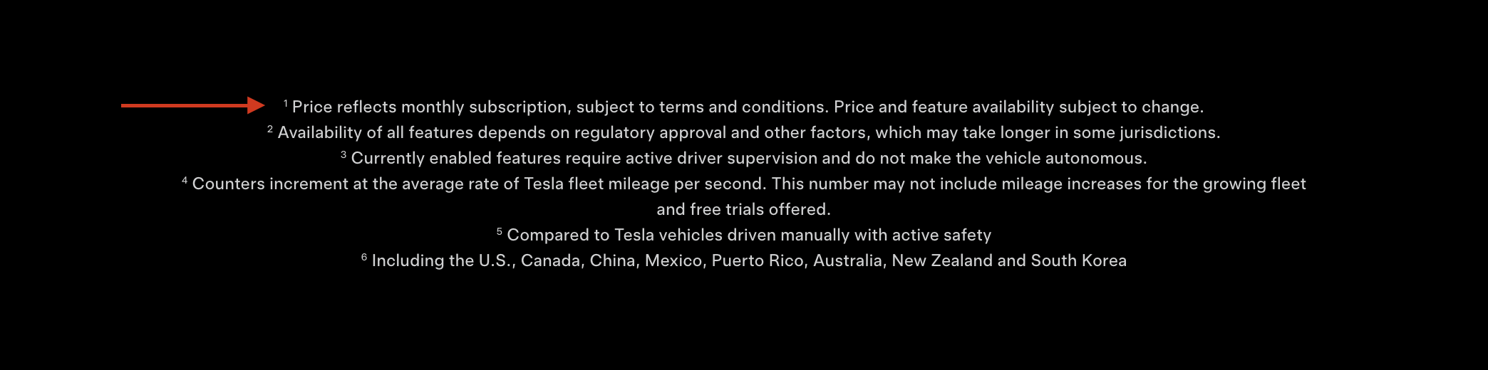 网站脚注内容已从“价格和可用性可能变更”更新为“价格反映月度订阅,受条款和条件约束。价格和功能可用性可能变更”。这一改动明确提及月度订阅,并将功能也纳入可能变更的范围,意味着特斯拉FSD条款允许公司随时调整价格与功能。