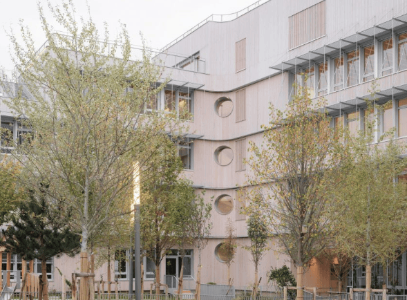 此前,Tectoniques在Saint-Cyr-au-Mont-d'Or的学校建设也采用类似阶梯形式与绿色平台。此外,Le Penhuel & Associés用生物材料在巴黎郊区打造了2400平方米的Simone Veil学校集团。