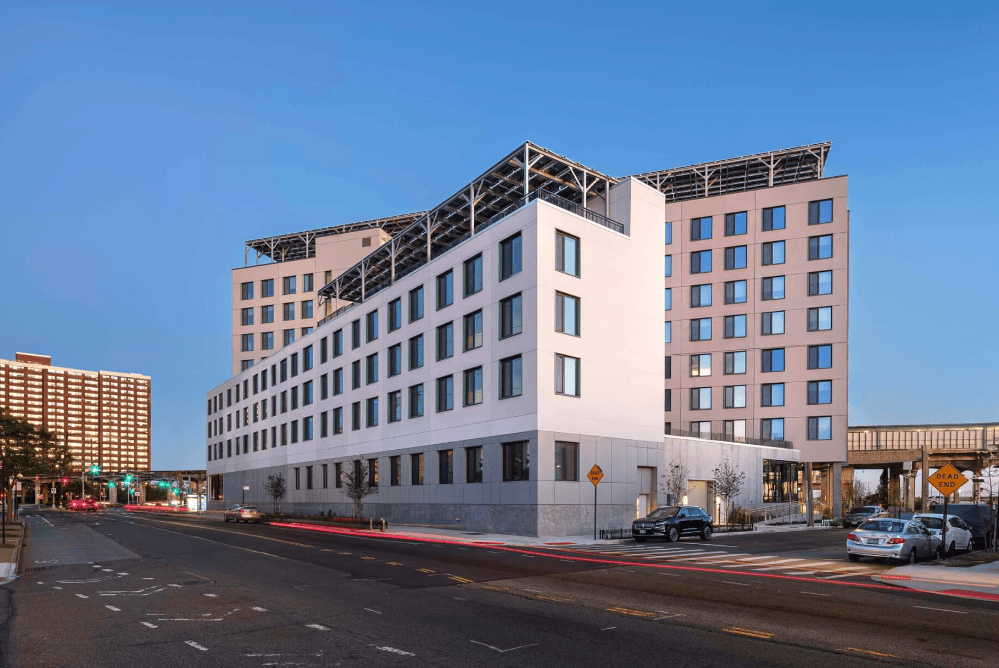 学校外立面面向街道处较为封闭,采用平凸交替的浅色陶瓷垂直条带覆层,灵感源自阿尔瓦·阿尔托作品。大窗户底部设窄金属种植槽,引入日光;教室窗户朝向庭院,有金属格栅遮篷保护。