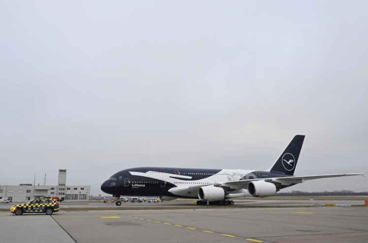 这架A380是汉莎航空第四架采用百年纪念涂装的飞机。此前,一架空客A350-900已在本月初降落慕尼黑,驻扎法兰克福的一架波音787-9和一架空客A320neo也已采用该特殊设计。明天,另一架配备超大型起重机涂装的空客A320neo预计将抵达慕尼黑。这架A380的喷涂工作历时34天,由35位专业人员完成,喷涂总面积超过4000平方米,相当于约16个网球场。