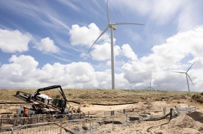 输电系统运营商 TenneT 表示,正在荷兰鹿特丹港区马斯平原地区沙丘下开始钻探,铺设电缆,将海上风电输送到岸上。