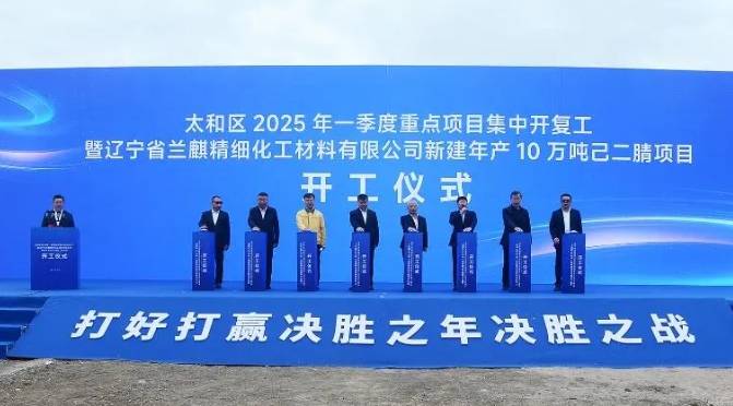 据悉,年产10万吨己二腈项目于今年3月25日举行开工仪式。2024年6月26日,该项目签约正式落户辽宁锦州太和区。