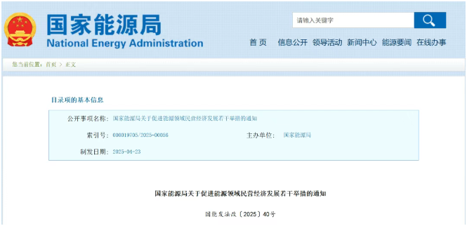 国家能源局关于促进能源领域民营经济发展若干举措的通知