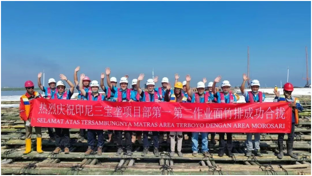 5月30日,由中国路桥承建的印尼三宝垄至德马克收费公路项目1B标段实现第一、二作业面竹排成功合拢,标志着项目建设由水上施工正式进入陆上施工,全面开启“大干快上”的新阶段。