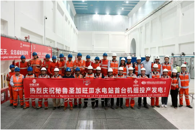 ▲秘鲁圣加旺III水电站首台机组投产发电