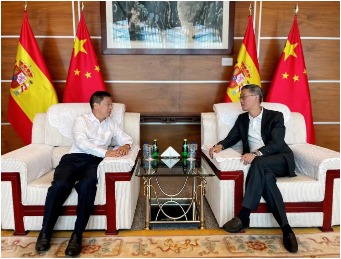 当地时间6月10日,中国能建首席科学家,中电工程党委书记、董事长,电规总院院长罗必雄在西班牙马德里拜会中国驻西班牙大使姚敬,双方就深化中西绿色能源合作、推动跨国电网互联互通及海外市场协同进行深入交流沟通。