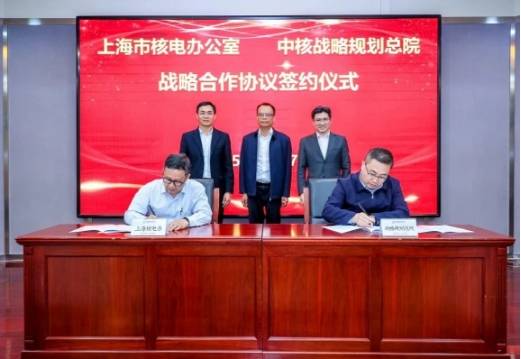 2025年4月27日,上海市核电办公室(以下简称“上海市核电办”)与中核战略规划研究总院(以下简称“总院”)在北京签署战略合作协议。上海市核电办党组书记、主任陆海宾,中核集团(上海)市场开发部主任孙云根,总院党委书记、董事长罗清平共同见证并举行会谈。上海市核电办党组成员、副主任朱军民,总院院长、党委副书记王振清代表双方签署协议。总院党委委员、副院长申瑞华参加会议。