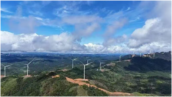 自2023年3月正式开工以来,电建项目团队创新应用BIM数字化模拟技术,精准预测风险并优化工序,采用“一机一方案”,科学调配资源,最终顺利、安全、高质量完成全部133台风机吊装,为东南亚区域山地风电建设树立技术典范。